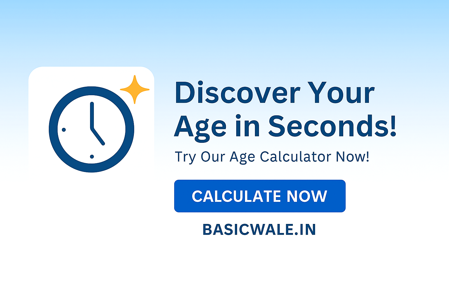 Discover Your Age in Seconds: Try Our Age Calculator Now![user-age-calculator template=1][user-age-calculator template=2]Calculate the age of a person, place or thing. The age calculator calculates age given a date of birth in years, months and days.Join WhatsApp channel
