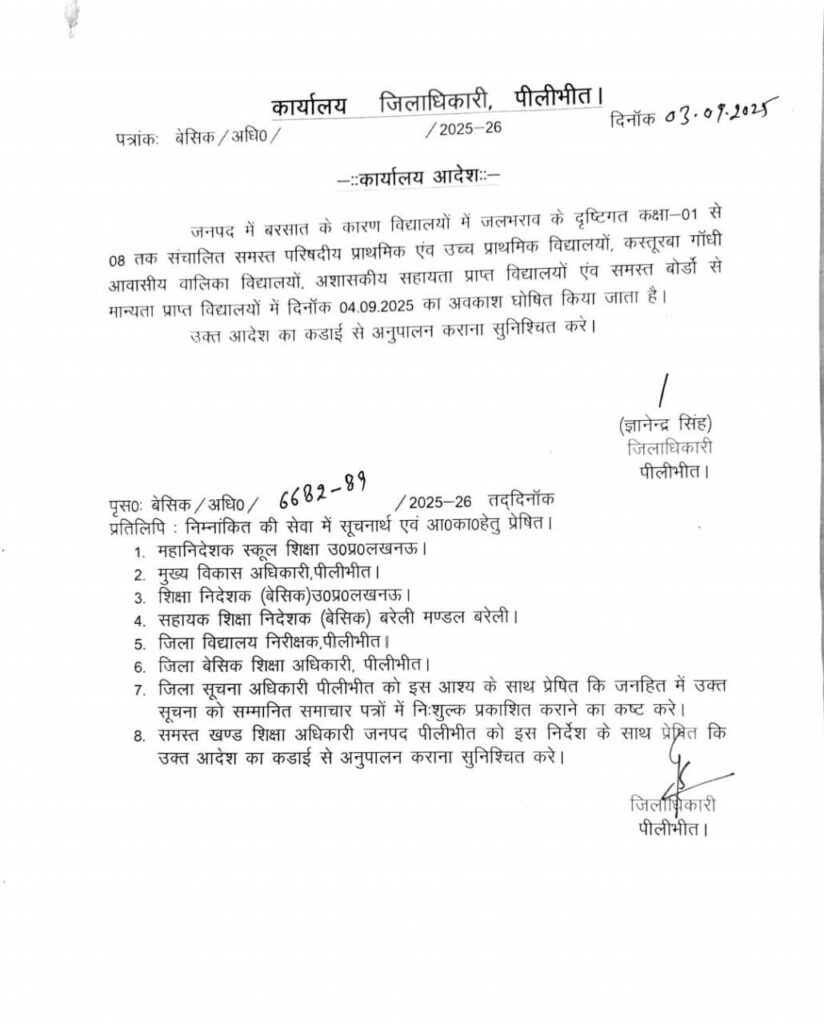 Primary ka Masterअवकाश सूचनाबरसात के कारण विद्यालय में जलभराव के दृष्टिगत कक्षा 1 से 8 तक के समस्त विद्यालयों में 4 सितम्बर का अवकाश घोषित By Basic waleOn: September 3, 2025 7:34 PMFollow Us:बरसात के कारण विद्यालय में जलभराव के दृष्टिगत कक्षा 1 से 8 तक के समस्त विद्यालयों में 4 सितम्बर का अवकाश घोषित