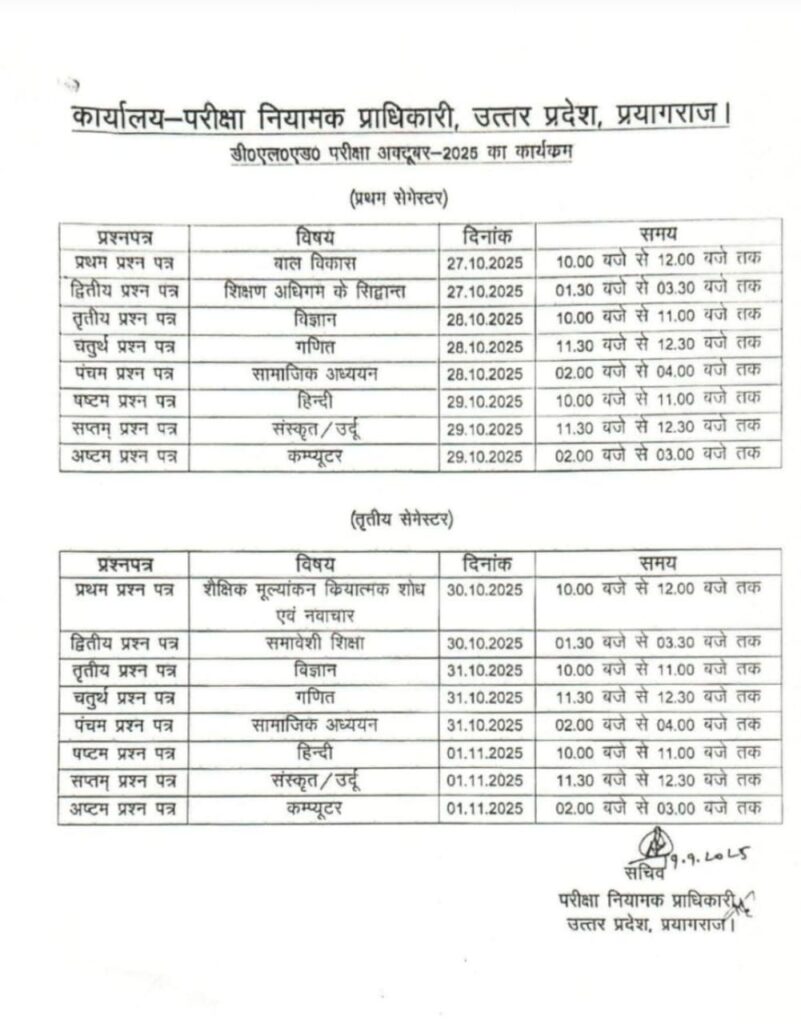 Primary ka Masterडीएलएड परीक्षा की समय सारणी हुई जारी By Basic waleOn: September 23, 2025 8:56 PMFollow Us:डीएलएड परीक्षा की समय सारणी हुई जारी
