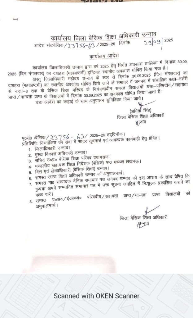 30 सितम्बर को दशहरा (महाष्टमी) का स्थानीय अवकाश अवकाश घोषित