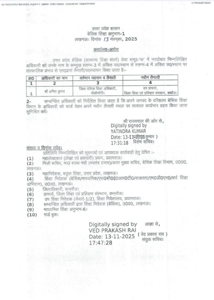 बेसिक शिक्षा अधिकारी अमित सिंह का तबादला,