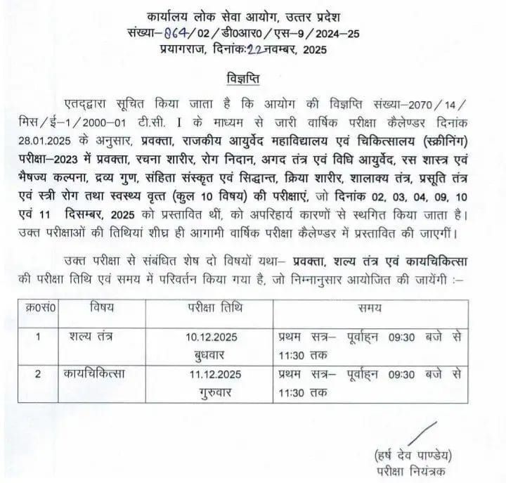 उत्तर प्रदेश लोक सेवा आयोग-… अपरिहार्य कारण से स्थगित