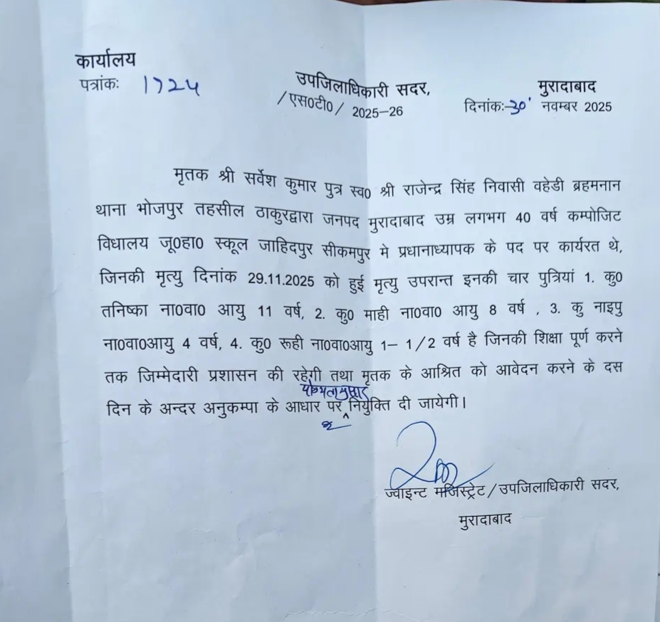 Primary ka MasterSIR मामले में मृतक सर्वेश कुमार की चारों बेटियों की शिक्षा पूर्ण कराने की जिम्मेदारी प्रशासन ने ली By Basic waleOn: December 1, 2025 8:23 PMFollow Us:SIR मामले में मृतक सर्वेश कुमार की चारों बेटियों की शिक्षा पूर्ण कराने की जिम्मेदारी प्रशासन ने ली