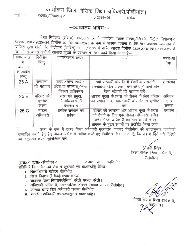 Primary ka Masterसुआ मोटो रिट पिटीशन के क्रम में संस्थागत क्षेत्रों में आवारा कुत्तों के प्रबंधन के सम्बन्ध में By Basic waleOn: December 24, 2025 7:28 PMFollow Us:सुआ मोटो रिट पिटीशन के क्रम में संस्थागत क्षेत्रों में आवारा कुत्तों के प्रबंधन के सम्बन्ध में Visit basicwale.inJoin our Whatsapp channel