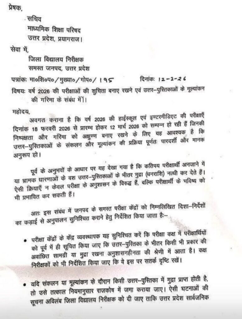 यूपी बोर्ड परीक्षा में उत्तर पुस्तिका में रुपये रखे मिले तो नकल सामग्री मानकर सील होगी कापी, परीक्षार्थियों की कापी पर कक्ष निरीक्षक निगरानी रखेंगे। पैसे रखे मिलते हैं तो कक्ष निरीक्षक नपेगें